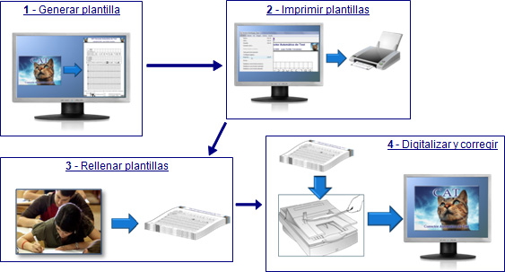 Finalmente se digitalizan las pruebas (con cualquier modelo de escáner) y CAT se encarga de reconocerlas y corregirlas de forma totalmente automática.